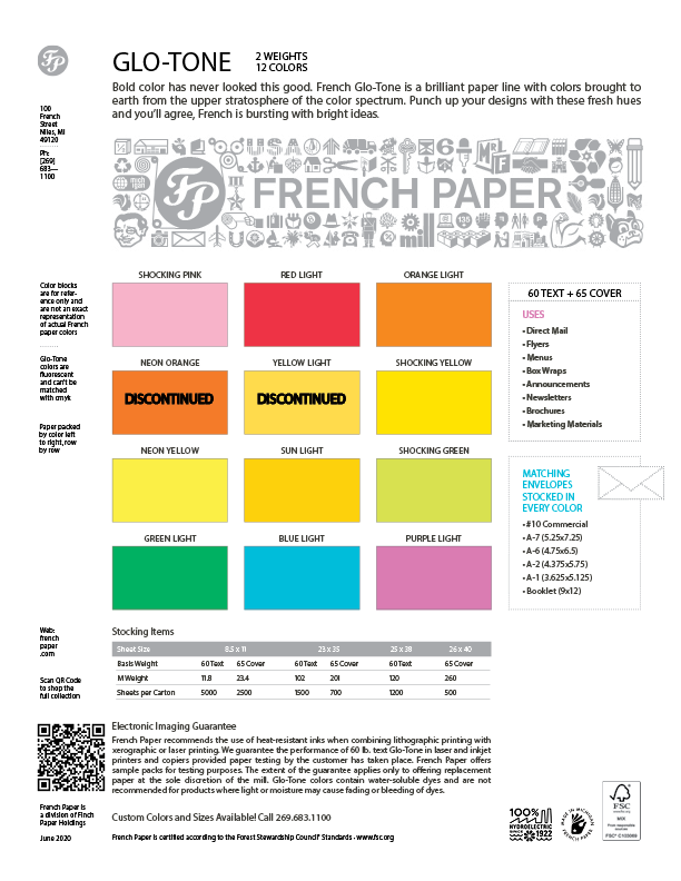 This 8 1/2 x 11, Sample Pack contains every current color and weight in the Glo-Tone line.