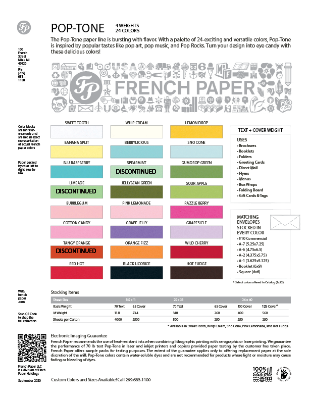 The Pop-Tone paper line has flavor, and that's an understatement. With 24 flavors to fit any palette, Pop-Tone is inspired by popular tastes like pop art, pop music, and Pop Rocks. Turn your design into eye-candy with these delicious colors. You'll create more excitement than a fleet of ice cream trucks.
