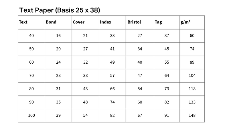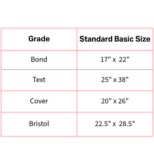 The term “basis weight” comes from how paper is measured: 500 sheets of a paper’s standard size are weighed to determine its grade. For example, if 500 sheets of 25x38” text paper weigh 70 pounds, that stock is classified as 70 lb. text.